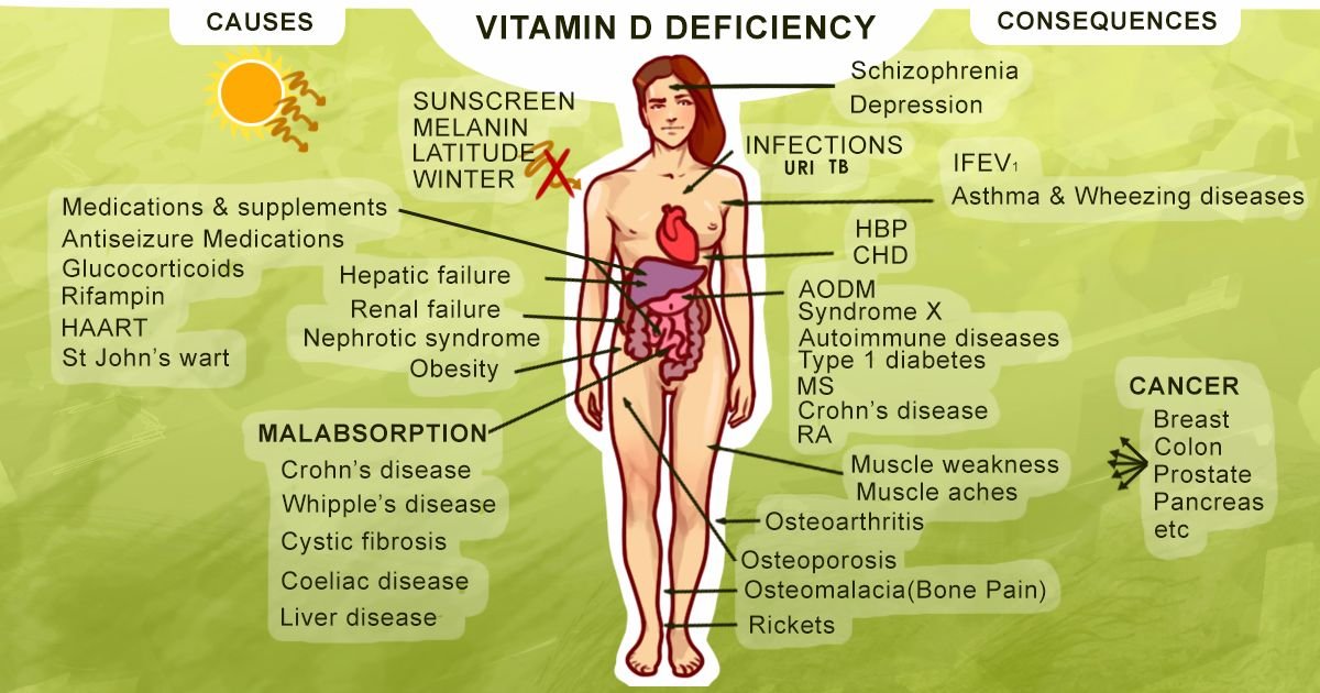 1) You’re often sick. There is a link between Vitamin D deficiency and an increased risk of both upper and lower respiratory tract infections such as pneumonia, as well as an increase in the common cold and flu.