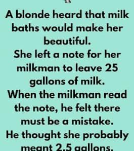 The blonde replied, “No, I definitely need 25 gallons. I’m going to take a milk bath to become more beautiful.”