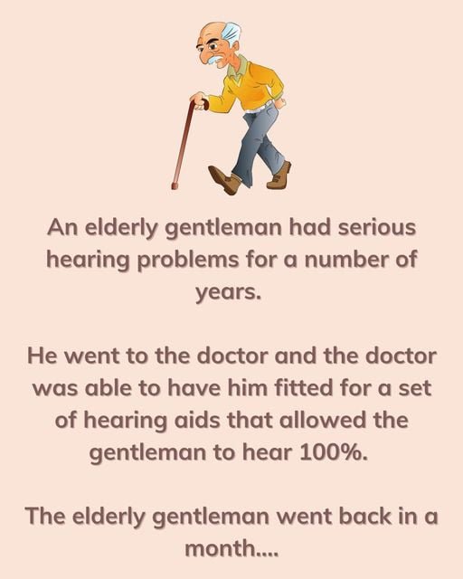 The elderly gentleman went back in a month to the doctor and the doctor said, ‘Your hearing is perfect. Your family must be really pleased that you can hear again.’