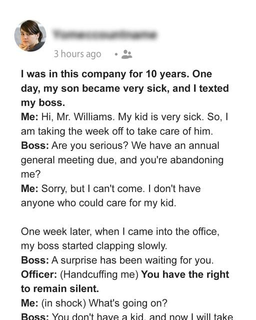 When Annie’s son becomes ill, she takes a week off from work. But when she returns to the office, her boss has a police officer…