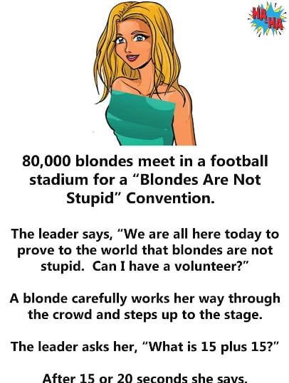 80,000 blondes meet in a football stadium for a “Blondes Are Not Stupid” Convention. The leader says, “We are all here today to prove to…