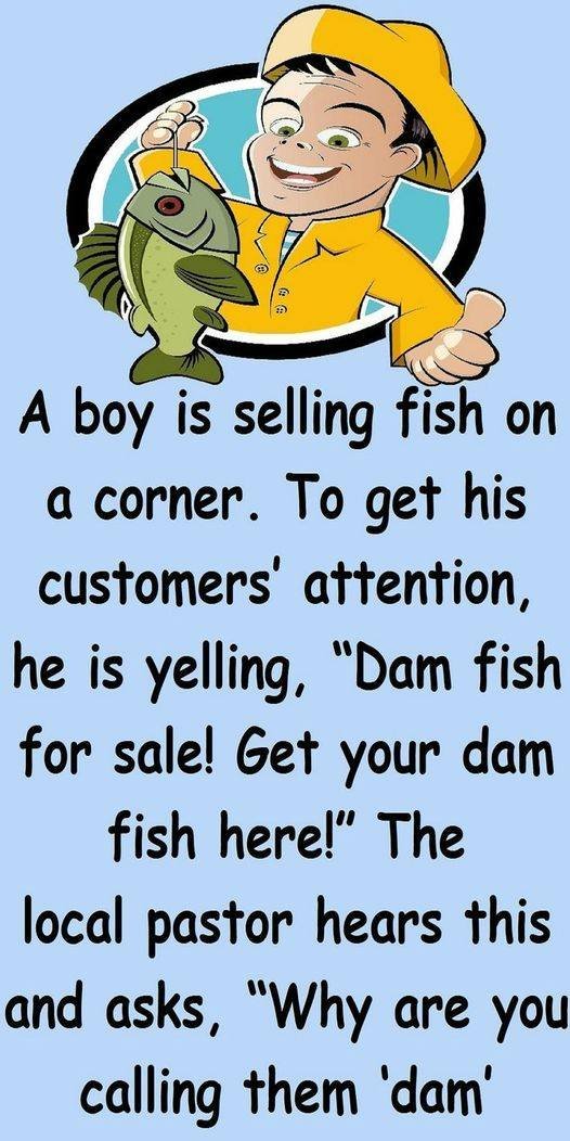 Someone going to work sees a crowd of people walking… A boy is selling fish on a corner. To get his customers’ attention, he is…