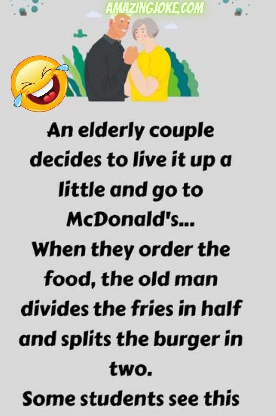 An elderly couple decides to live it up a little and go to McDonald’s… When they order the food, the old man divides the fries…