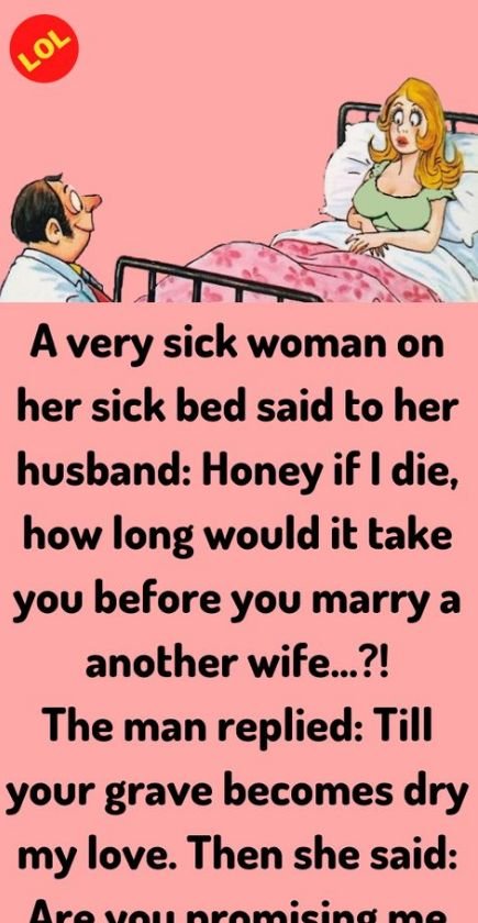 A very sick woman on her sick bed said to her husband: Honey if I die, how long would it take you before you marry…