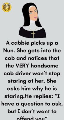 A cabbie picks up a Nun. She gets into the cab, and notices that the VERY handsome cabdriver won’t stop staring at her. She asks…