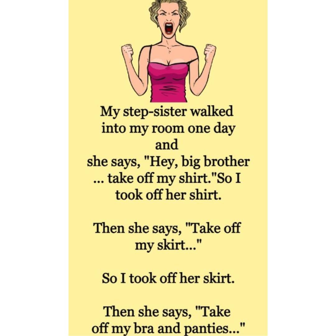 After entering my room one day, my step-sister said to me, «Hey, big brother… take off my shirt.» I took off her shirt. Then she…