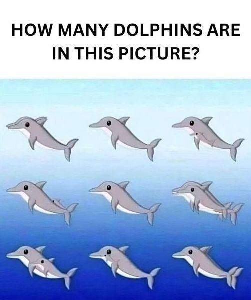 Let’s start with an optical illusion featuring adorable dolphins that will surely perplex your mind. Take a look at the image below and try counting the number of dolphins.