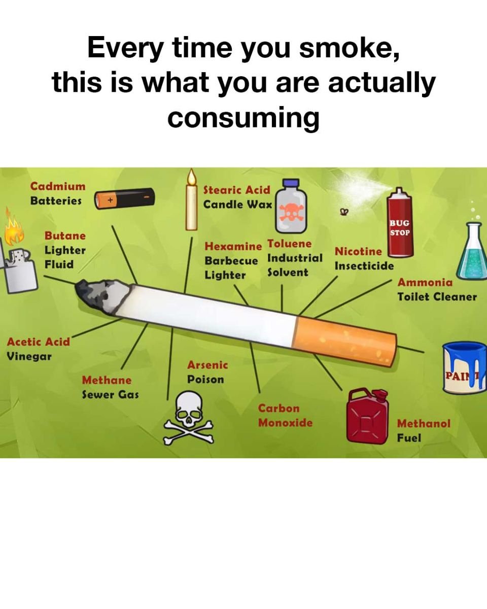 Smoking is an act that has been a part of human culture for centuries. Despite its historical and social significance, the act of smoking, particularly cigarette smoking, introduces a plethora of harmful substances into the body. Beyond the well-known dangers of nicotine and tar, cigarettes contain a disturbing array of chemicals that are more commonly found in industrial and household products.