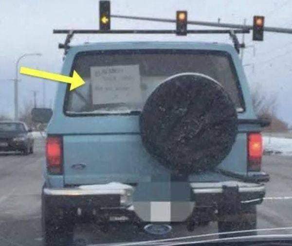 It wasn’t until Hailey got stuck behind said car at a red light that she noticed the note in the back window.