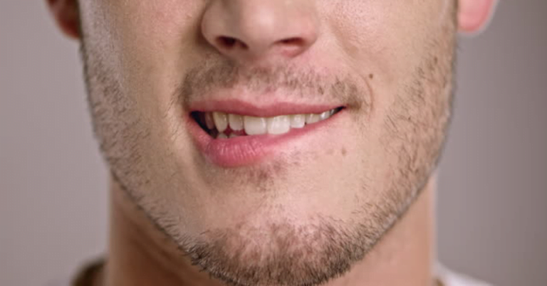A man might subconsciously start biting his bottom lip if he’s attracted to you. This is often a way for guys to try and look more attractive or masculine.