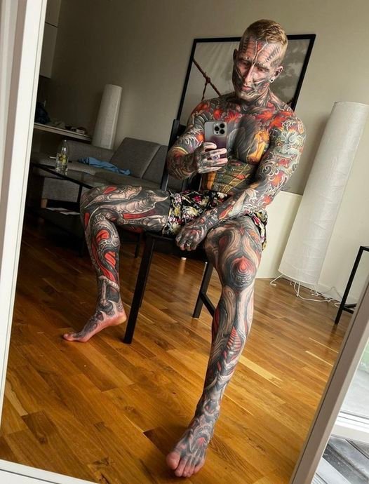 Hailing from America but now residing in Copenhagen, Tristan has curated a substantial following on Instagram, showcasing his evolving tattoo journey. The bold decision to cover 95% of his body with tattoos, excluding only his palms, private parts, and the soles of his feet and ears, reflects his commitment to the art form.