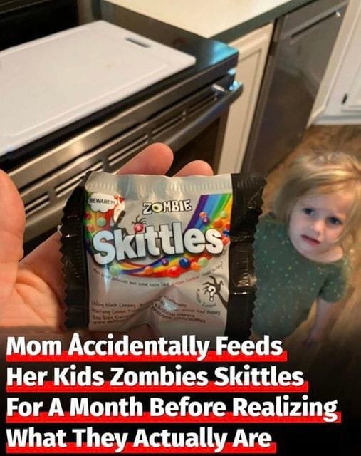 Her kids complained about the awful taste, but she dismissed it, telling them they wouldn’t get any more candy if they continued being ungrateful. It wasn’t until much later that she discovered Zombie Skittles contain one horribly flavored piece in each pack, a prank-like feature meant for Halloween fun.