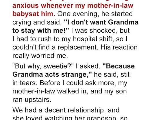 But lately, Leo had been acting strange whenever Denise came over. At first, it was small things. He would cling to my leg a little longer than usual when I tried to leave or hide behind the couch when he heard her car pull up in the driveway.