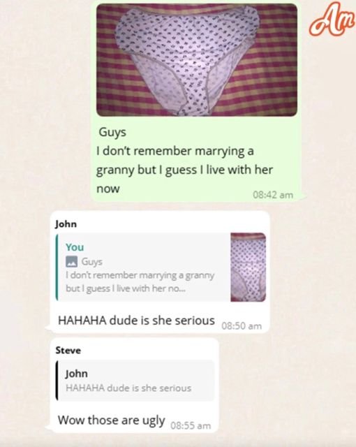 On closer inspection of the image, I realized it was my own underwear drawer! Overcome by curiosity, I unlocked his phone to take a peek. I found myself scrolling through a group chat filled with his closest friends.