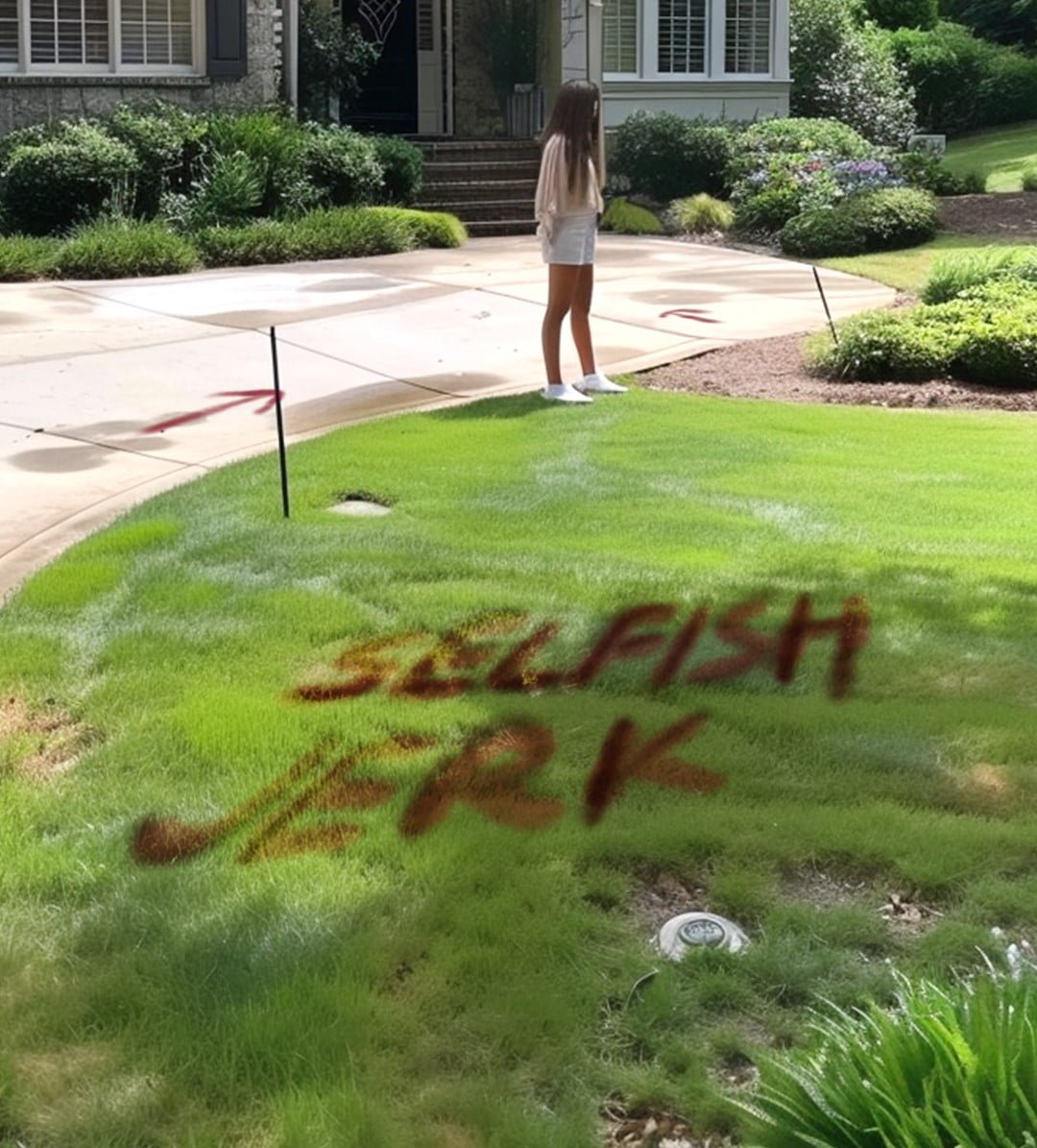 And he still parked his car here?I marched straight over to his door and knocked hard. When Tim opened up, he was wearing pajamas and a nightgown. “Tim, I told you about parking your truck in my driveway,” I said. He just shrugged. “It’s just for a few hours, man,” he said. “It’s not a big deal.””Move it, Tim. Now. We’ve all got places to be,” I said. I glared at him. He sighed dramatically, but he moved the truck and hooted as I drove off. I thought that would be the last time, but it wasn’t. Over the next week, he kept doing it. His truck, visiting friends’ vehicles, boxes, and lawn equipment. It didn’t matter—he would just leave things in my driveway. If there was space, good old Tim would use it.Finally, I had enough. “Don’t fight with him, love,” my wife, Kelsey, told me when we were having dinner, and I was complaining about Tim.”But if nothing changes, he’s just going to continue this behavior,” I said, cutting into the roast chicken. “Then call the homeowners’ association, Brian. File a complaint. You know they won’t let it go. They’ll give him a warning, and that should be enough.”I nodded. That was the more diplomatic option. But that’s when things got ugly. The next morning, I stepped outside to find bright orange spray paint scrawled across my lawn. In huge, bold letters, it read: SELFISH JERK. I almost punched the wall when I saw it. My lawn, which I’d taken so much pride in, was ruined. And worse, the entire neighborhood could see it.I took photos of the message, marched over to Tim’s house, and pounded on his door. When he opened up, he was grinning like a kid who’d just pulled off the prank of the year. “Do you really think this is funny?” I snapped, shoving my phone in his face. “What are you going to do about it?” he laughed. “Call the cops over some paint?” I clenched my fists, barely holding myself back. I hated when people took advantage of me.”You’re going to regret this,” I said, turning to leave before I did something I’d regret. I drove straight to the police station. I filed a police report, but there wasn’t much they could do. Tim hadn’t damaged any property exactly, and the paint wasn’t permanent. The police could only document the incident. I needed a plan of my own, and soon enough, I had the perfect idea.What Tim didn’t know was that my brother runs a landscaping company. “I need your help, Andrew,” I said, quickly telling him everything that had gone on. My brother laughed for a few minutes.”I’ve got you sorted, brother,” he said. “We’ve got a new dye that will make sprinklers fun!”I had no idea what he was talking about, but he was the best in the business, and I knew that he would fix my lawn and still try to teach Tim a lesson or two. That weekend, Andrew came over with his crew and all the equipment that they needed. We spent the entire day ripping up my front lawn, digging out the ruined grass, and laying down new, flawless sod. But that wasn’t the best part. Andrew finally explained what he meant about the dye.”It’s a harmless chalk-based dye,” he said. “We developed it for a project at one of the schools. It was an installation that involved lights and sprinklers and patterns. I won’t get into the entire thing, but it will teach this guy a lesson.” I laughed with my brother, thinking about Tim’s reaction to the new sprinkler system. Come Sunday morning, as I had expected, Tim was out walking his dog right past my house. I stood outside on the porch, my coffee in hand, ready to watch the show.Right on schedule, Tim and his dog were blasted with bright blue water, soaking them both from head to toe. The look on his face was absolutely priceless. He took off running, dripping with blue dye, cursing under his breath. I would have felt bad, but the dye was harmless and would wash out easily. But the joy was that he was humiliated in front of the entire neighborhood.Later that day, Tim stormed over, blue stains all over his clothes.”What the hell, man?” he yelled at me. I leaned against my doorframe, crossing my arms. “What are you going to do, Tim? Call the cops over some water?” He stared at me, speechless, then turned and walked away without another word. Since then, he hasn’t parked in my driveway or pulled any stunts. But honestly, I’m just waiting for him to do something else. I’ll just continue to teach him a lesson.What would you have done? If you enjoyed this story, here’s another one for you | I Came Home to See My Furniture Put up for Grabs — My Ex-husband’s Petty Revenge Backfired Spectacularly When Gina and her husband, Brendan, decide to split up, she takes a moment away from the drama by staying with her parents for a weekend. But when she returns, she finds all her belongings scattered across the lawn. With luck on her side, Gina finds a priceless item belonging to her ex-husband. Read on as she gets her revenge… After Brendan, my husband, and I decided to split, he turned into a completely different person overnight. The man I once knew, the one I shared years of my life with, had vanished altogether. In his place stood someone bitter and spiteful.”You’re complaining about how I behave? About how I speak?” Brendan shouted. “I’m just saying that you need to calm down when you’re talking to me. Screaming won’t make your point come across better,” I said, holding my head. “Oh, please, Gina,” he bellowed louder. “You made me this way! All of your ridiculous demands and constant whining. Please, just go live your life.”And so I did. But as the divorce was in process, Brendan and I tried to sort out our things, ready to make a clean break. “Just let me pack these things up, Gina,” Brendan said one day as he was going through my bookshelf.”You’ll just take my things with you,” I countered. “I have to settle my own things first.” “Suit yourself,” he said.But things 