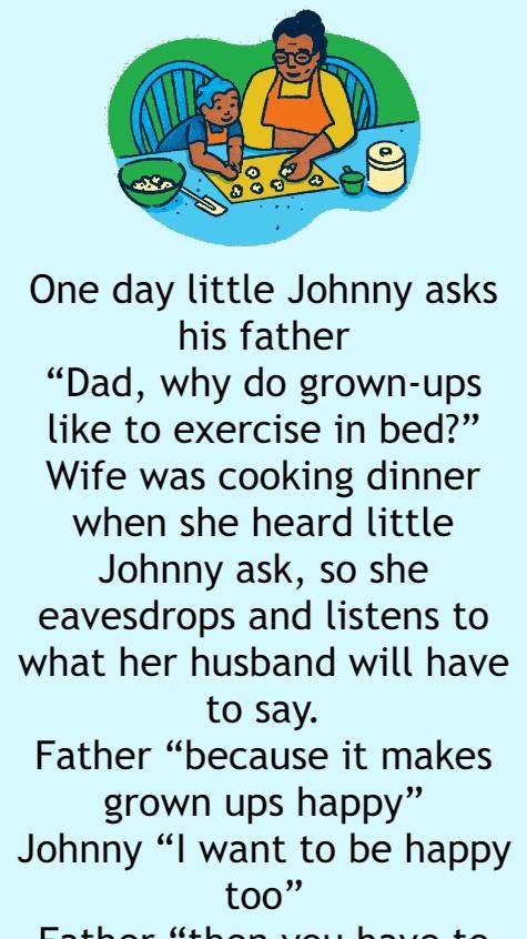One day little Johnny asks his father “Dad, why do grown-ups like to exercise in bed?” Wife was cooking dinner when she heard little Johnny…
