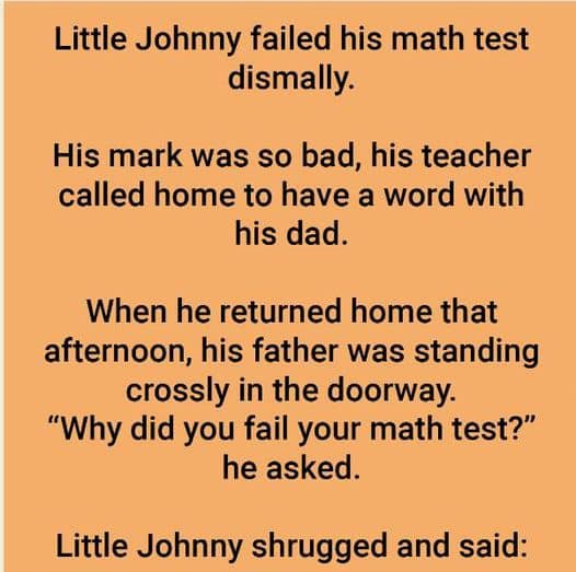 His grade was so terrible that his teacher called home to speak with his father. When he got home that afternoon, his father stood crossly…