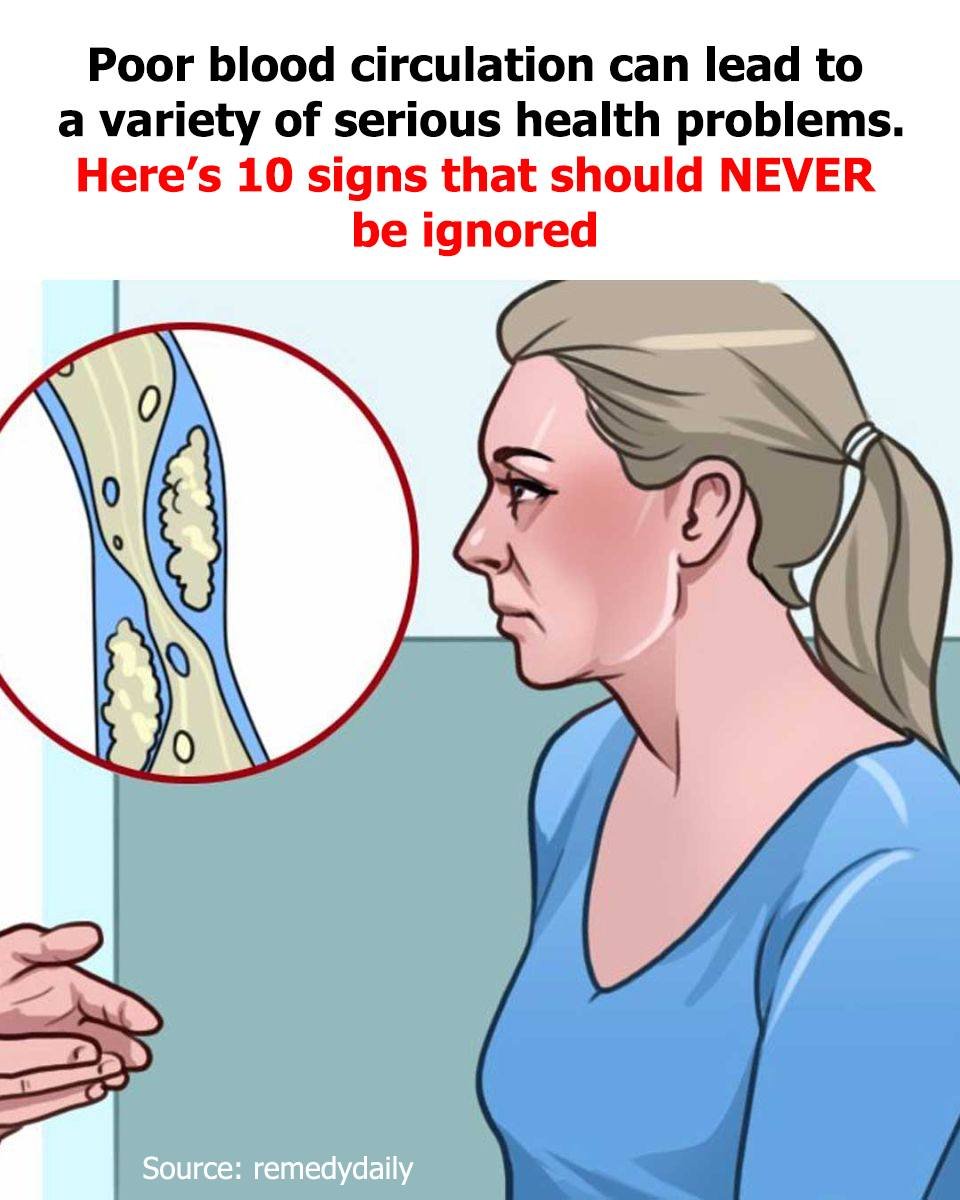 Poor blood circulation is a serious issue that can lead to a wide range of health problems. Blood circulation is responsible for delivering oxygen, nutrients, and other essential elements to every part of your body, and when it’s compromised, your body may begin to show alarming symptoms. Ignoring these signs can have severe consequences. Below are 10 signs of poor blood circulation that should never be ignored: