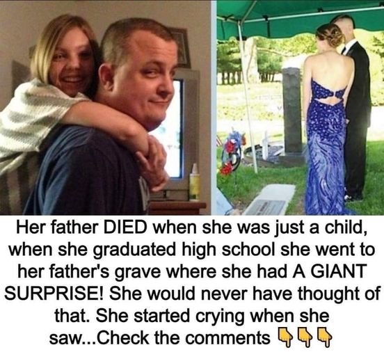 Four years later, his daughter graduated from high school. Immediately following the ceremony, she and her boyfriend visited her father’s cemetery to take a photo to remember the occasion. In order to remember the day she graduated from high school, the photo was positioned on the grave.