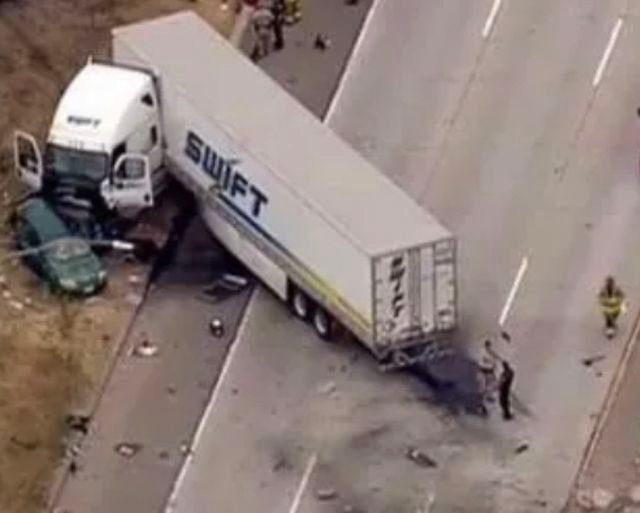 A big rig crossed into oncoming traffic on a highway near San Diego, according to KNSD. Inside one of the cars the truck hit was a mother, along with her two young daughters and another adult family member.