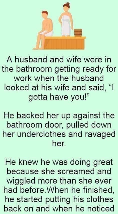 When he was done and started getting dressed, he noticed his wife still moving against the door. He said, “That was amazing, honey. I’ve never seen you move like that before. Did you hurt yourself?”