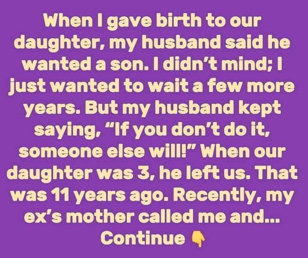 Recently, my ex’s mother called me and asked me to meet. I didn’t want to, but still agreed.