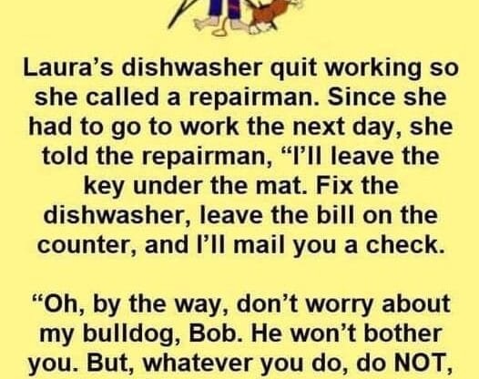 But this particular handyman was given clear instructions on what not to do that particular day. Read the story below. Laura’s dishwasher quit working so she called a repairman.