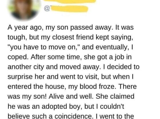 Something attracted her. It was a distinctive birthmark on the baby that looked exactly like the one her late son had. Unable to contain her emotions, Tina started sobbing with the baby still in her arms.